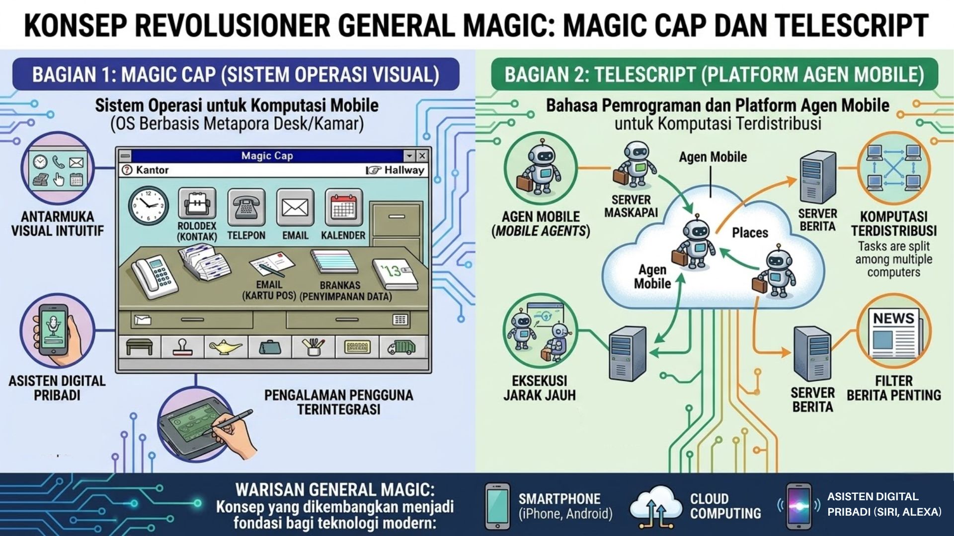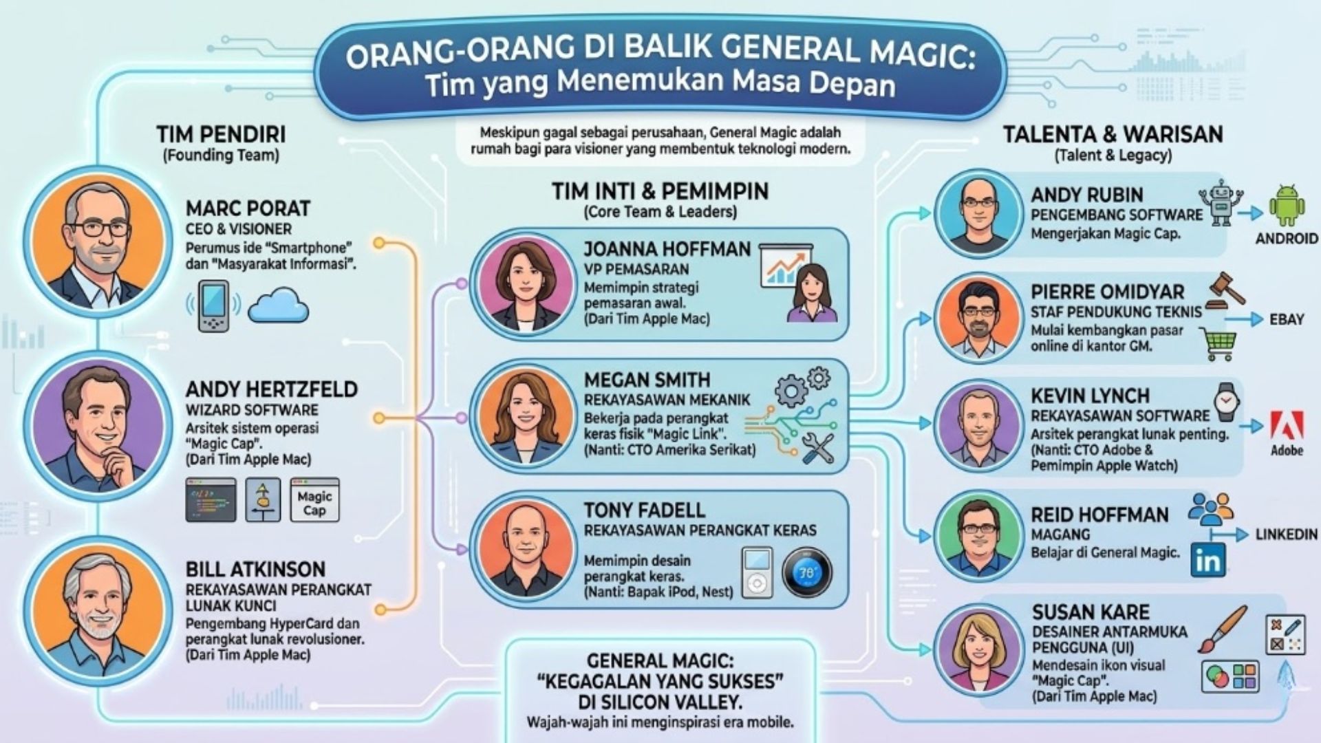 Pada awal dekade 1990-an, sebuah mitos modern mulai terbentuk di sudut tersembunyi Silicon Valley. Di tengah dominasi komputer personal yang masih berbentuk kotak abu-abu yang kaku dan berat, sekelompok insinyur terpilih berkumpul untuk melakukan sesuatu yang dianggap mustahil pada zamannya. Mereka tidak hanya mencoba membangun komputer yang lebih baik; mereka mencoba menciptakan "sihir". Perusahaan ini, yang dikenal dengan nama General Magic, beroperasi dalam kerahasiaan yang sangat ketat, didorong oleh keyakinan bahwa mereka sedang merancang masa depan komunikasi manusia.
